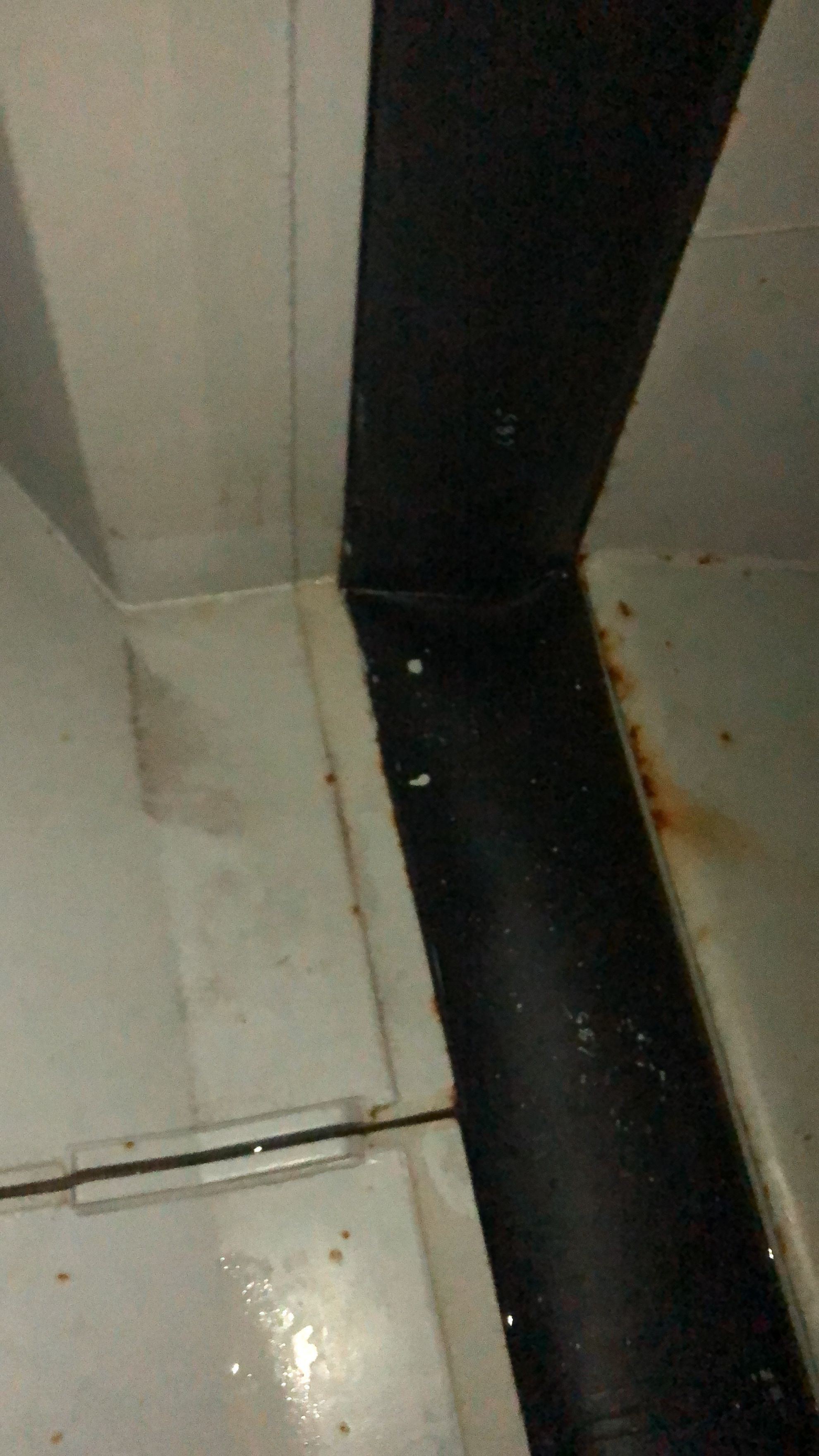 Signs of construction errors, leaks behind HEPA filter stage
