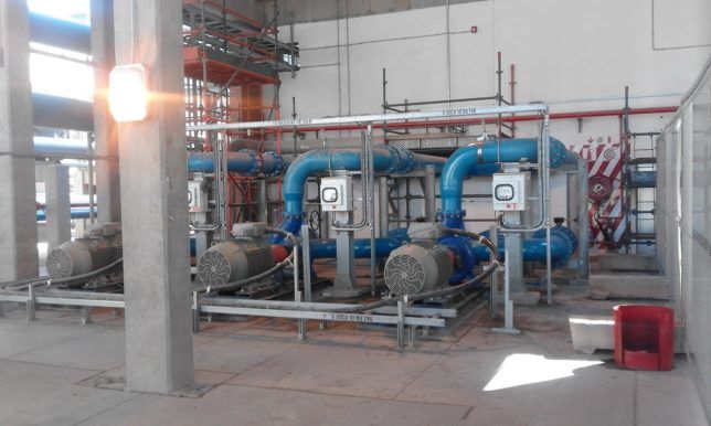 The first group of pumps operated as 1+1 arrangement (1 operating + 1 standby) during the first year. It ran at low speed. Five pumps were needed in the second year (two existing VSD pumps and three new pumps). These operated in 3+2 arrangement (3 operating + 2 standby). Each pump provides a capacity and head of 2,500 m3/h and 60 m, respectively.