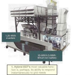 new regulatory drivers. In response, GE has paired their LM6000 Gas Turbine with a 10-MW/4.3- MWh Lithium-Ion Battery, creating a grid-scale UPS system that is now considered Spinning Reserve. LM6000 Hybrid EGT. An Energy Management system optimizes the combined system.