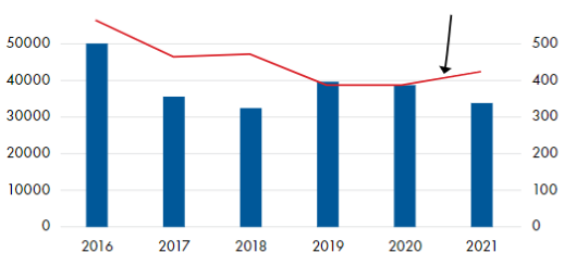 New gas turbine orders down overall 12% (measured in MW) in 2021 but up on 8.5% in the number of units. But looking deeper at the numbers, aeroderivative unit orders in 2021 were up 11% for the year. When viewed outside of the volatile Russian market, aeroderivative unit orders were up 110%. Further, North American aeroderivative unit and ME orders were both up more than 300% in 2021. The LM6000 accounted for more than 50% of the MW orders and the LM2500+ for about 50% of the unit orders.