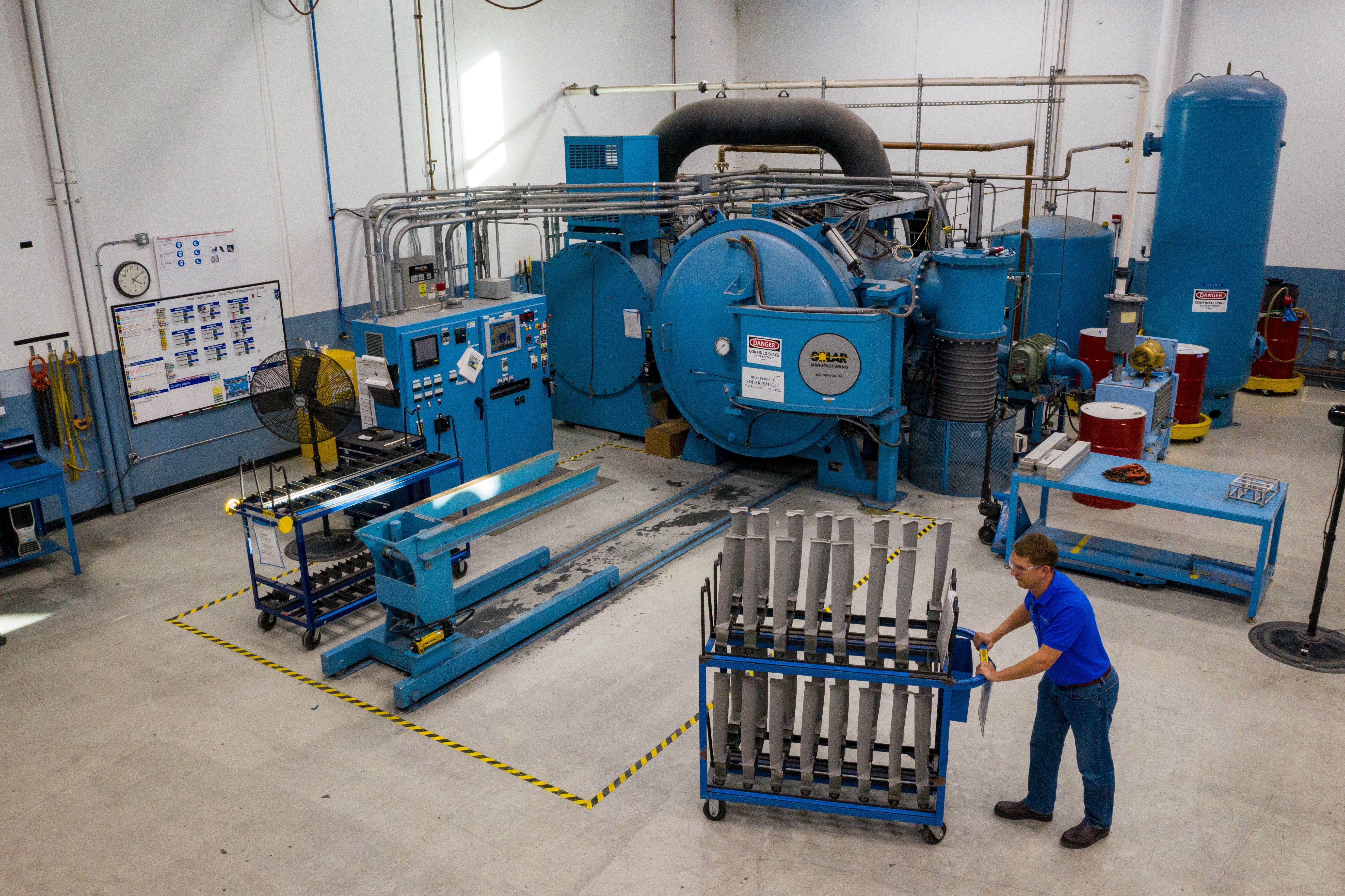 Loading of PSM F-Class turbine components into vacuum heat treat furnace.