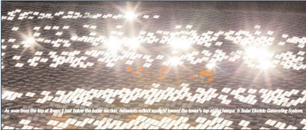 Sitting in the California desert less than 50 miles from Las Vegas, the facility includes three steam generating units situated inside 450-foot towers. This is the first solar plant to use BrightSource CSP technology, which includes 173,500 heliostats (large mirrors) that follow the sun’s trajectory, solar field integration software and a solar receiver steam generator. The project received a $1.6 billion loan guarantee from the U.S. Department of Energy’s Loan Programs Office.