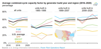 The average utilization rate for newer natural gas combined-cycle generators in the U.S. is slightly higher than that of older, less efficient generators.