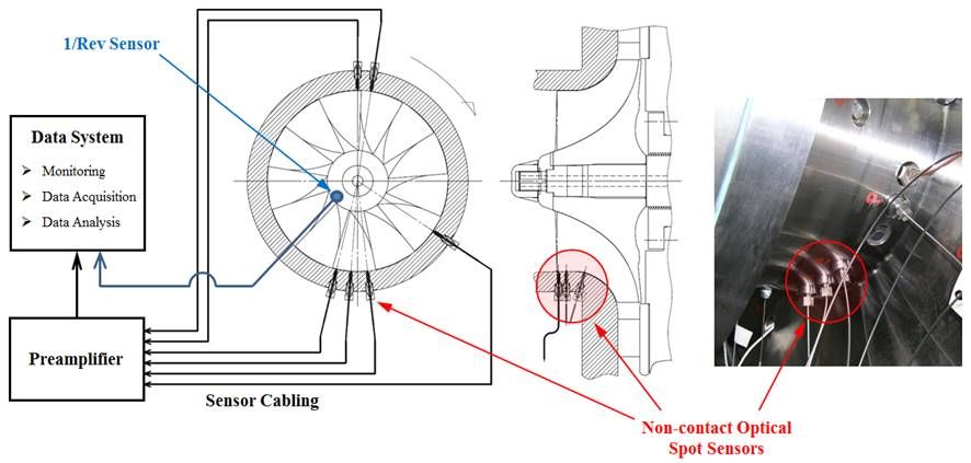 Figure 2: Kobelco established an evaluation method for dynamic blade stress using optical spot sensors for non-contact blade vibration measurement of the compressor.[/caption]