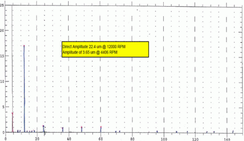 Figure 4: Non-synchronous shaft vibration peak in Spectrum (shown in red)