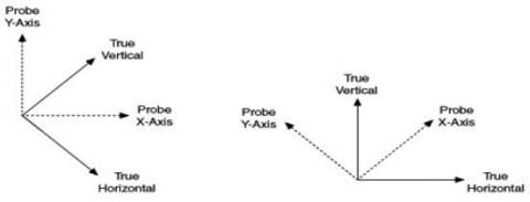 st rotate the data by the probe’s angular offset from the desired coordinates. Figure 2 shows the effect of compensating for a 45-degree mounting position. Virtual rotation of the probes was carried out using the vibration diagnostic software.