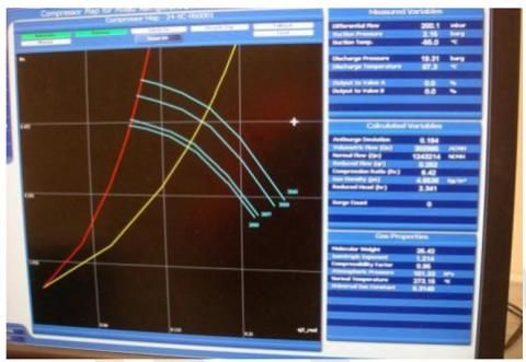 The following illustrates the results of an LNG MR loop operating with a higher than design MW gas. As shown, the compressor discharge pressure was significantly higher than predicted.