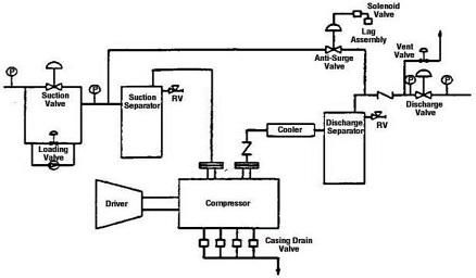 So again, it is the responsibility of the site rotating equipment engineer to assure the commissioning team is properly trained and that a detailed procedure is developed when pressure testing process loops that include centrifugal compressors. The following is a typical process loop.