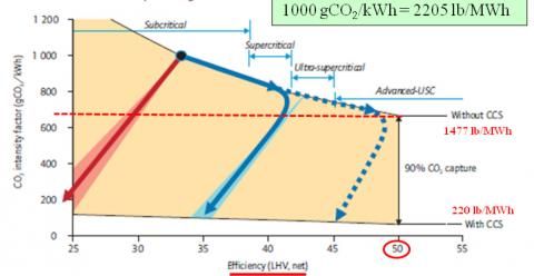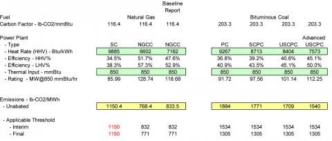 The Advanced Ultra Supercritical Pulverized Coal Plant(USCPC) at 1540 lb-CO2/MWh, would appear to meet the interim full load threshold level of 1534 lb-CO