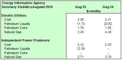 The fuel cost differences are also narrowing, as shown in the following data extracted from the Energy Information Agency’s August 2015 year-over-year comparison, reducing coal’s historical price per mmBtu advantage.