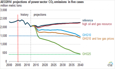 These EIA projections, as stated, do not specifically include the effect of EPA’s new ruling, but several scenarios explore the effect of a $10 and $25 Energy-Related CO2 fee, as well as fuel cost and availability differences.
