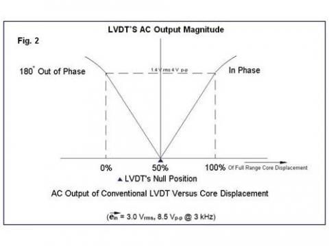 The electrical output of an LVDT as a function of its core's position is shown in Figure 2 below.