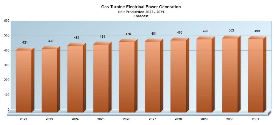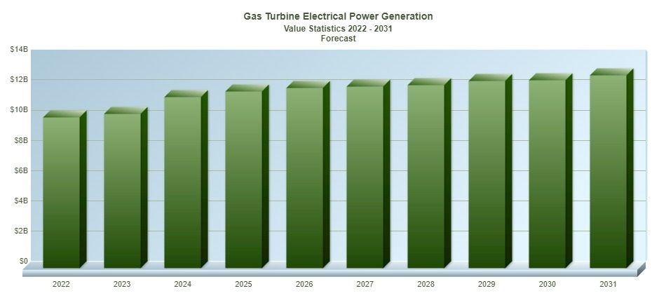 Gas turbines are expected to generate about $10 billion in sales in 2022. This is forecast to climb gradually to more than $12 billion by 2031.