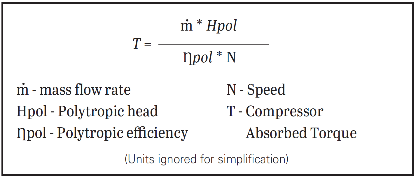 At restart, if the SOP is considerably higher than the design inlet pressure, the gas density and hence mass flow rate with full recycle through compressor are also high, requiring consider-ably high absorbed torque as in the equation below: