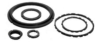 For circumferential main shaft seal rings, carbon-graphite segments that fit with close-end clearance in slots in the stationary housing are used. The carbongraphite segments are tensioned against a ceramic or hard-metal coating on the rotating shaft using a “garter” spring.