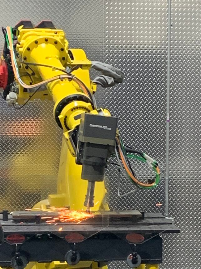 Caption: This Fanuc CNC machine at the Siemens Innovation Center is grinding a part