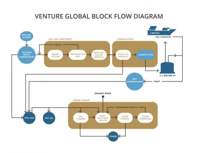 An LM6000 aeroderivative GT will also be placed on site for startup and peaking needs. The project has 20-year LNG sale and purchase agreements with Shell, BP, Edison, Galp, Repsol and PGNiG. Additionally, Venture Global is developing the 20 MTPA Delta LNG project in Louisiana.