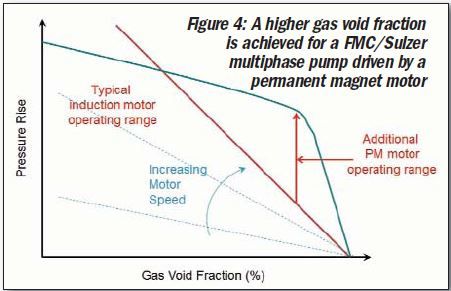 Figure 4: A higher gas void fraction is achieved for a FMC/Sulzer multiphase pump driven by a permanent magnet motor