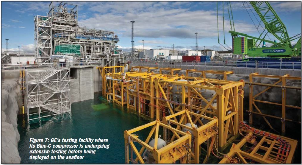 The GE Oil & Gas Blue-C compressor is in the finalizing phase of qualification testing (Figure 3). It is intended for unattended operation at almost 3,000 feet below sea level with power of up to 12.5 MW. Installation on the seabed is expected in 2019.