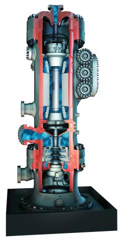 FMC Technologies has developed a permanent magnet motor that allows for high-speed pump operation relative to induction motors allowing for high boost at high gas void fractions (GVF) (Figure 4). It is coupled with hydraulics and a balance piston design from partner Sulzer that mitigate the thrust loads that are required to be taken by the thrust bearings. Using this approach, higher boost pressures can be achieved than previously possible, which translates into higher production for operators.