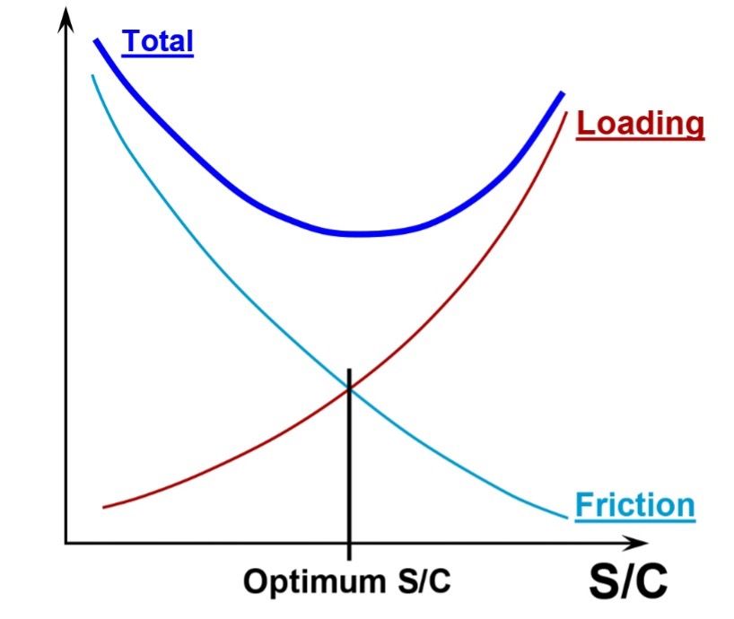 Figure 4. The Dependence of Loading & Friction Losses on s/c Ratio. (Rashid, S., and Rao, N. M., 2022, Steam Turbine 201 Course – Steam Turbine Aerodynamics). Presented at the 51st Turbomachinery & 38th Pump Symposia, August 2022.