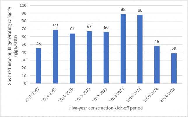 Figure 7: Planned new-build gas-fired generation, by five-year period. Source: IIR.