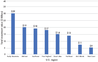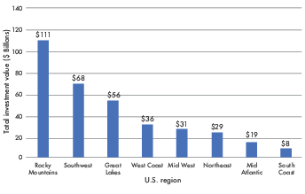 Figure 12: Dollar value of planned new-build windpower, by region Source: Industrial Info Resources.
