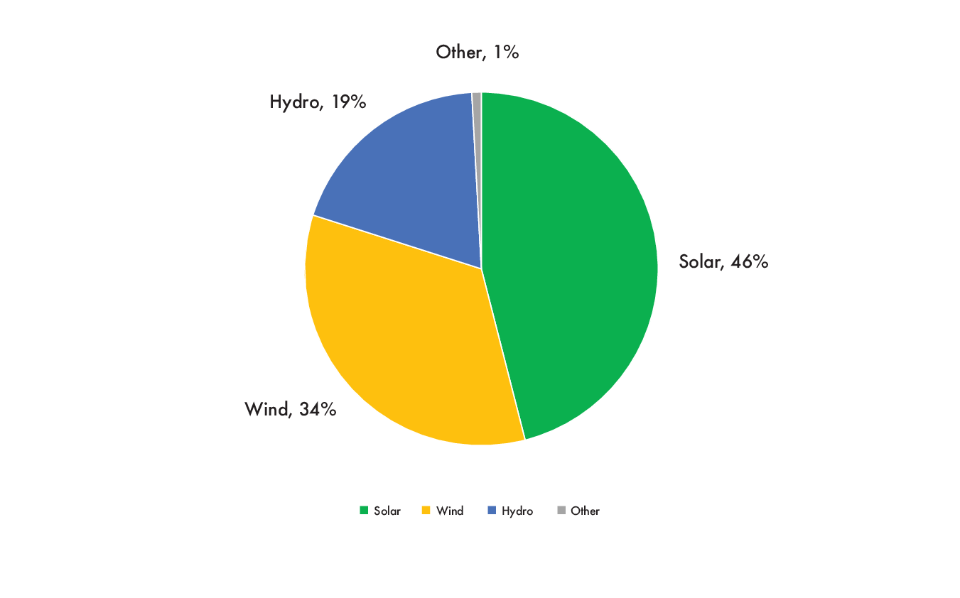 Over the next five years, solar is expected to surpass wind for the first time in utility-scale renewable energy construction (Figure 10). The widespread popularity of rooftop solar, both for residential and commercial settings, is not reflected in Figure 10, so the growing popularity of rooftop solar likely would give that energy source an even larger slice of the renewables’ pie.