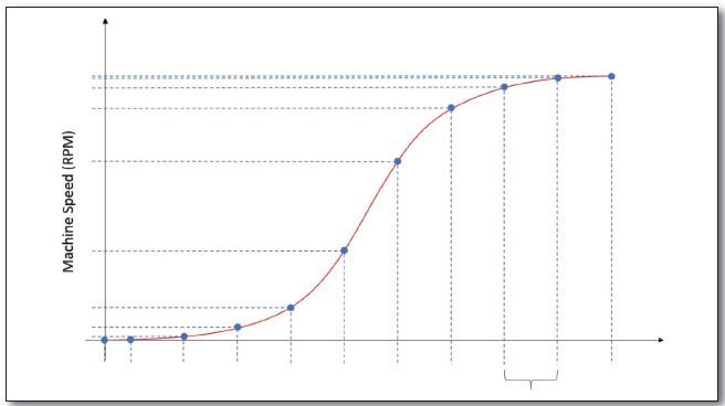 This mode collects data at preset rpm intervals. For example, the user may configure the system to collect a waveform (dynamic data) at 100 rpm intervals during a startup.
